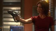 "Runner" is the last episode where Rainbow Sun Francks (portrayed Aiden Ford) is credited as a regular cast member. Jason Momoa joins the main cast in this episode. While rehearsing scenes for "Duet" where Cadman has control of McKay's body, Jamie Ray Newman would do a scene first, and then David Hewlett would try to mimic her movements, cadence, accent, etc.[1] Alan C. Peterson, who played the Magistrate in "Trinity", previously played Canon in Stargate SG-1s "Demons". The episode title of Episode not found is a reference to the Trinity test.[2] The outdoors parts of "Instinct" were filmed on location at Lynn Valley Canyon, North Vancouver.[3] Jewel Staite, who played Kaylee Frye on the cult Sci-Fi show Firefly, is the second Firefly cast member to guest star on a Stargate series, the first being Adam Baldwin in Stargate SG-1 episode "Heroes". She would later go on to play Dr. Keller as a recurring guest star at the end of Season 3, continuing into Season 4 prior to becoming a series regular in season 5.
