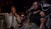 The first episode filmed after the hiatus was "Lockdown", which aired third. The writers thought it would be fun to test O'Neill in his new position as general of the SGC early on and to have him prove his worth.[10] The episode "Avatar" served as an introduction for a Stargate game that was produced at the time, and much of the story was filmed from a first-person perspective.[2] "Zero Hour" is the last episode to have CRT monitors in the briefing room and the control room.[1] Amanda Tapping originally hoped to direct another episode after her debut in season seven's "Resurrection",[16] but she became pregnant late in the season.